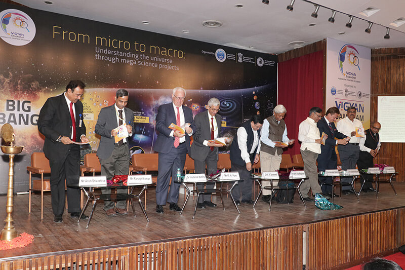 Inaugurating Vigyan Samagam, Dr Vijay Kumar Saraswat, Member, Niti Aayog, congratulated the scientists involved in the mega science projects and hailed India’s participation in it. “Vigyan Samagam will enhance overall knowledge quotient of career seekers in fundamental science, and inform common man and the society about science and technology,” he added.